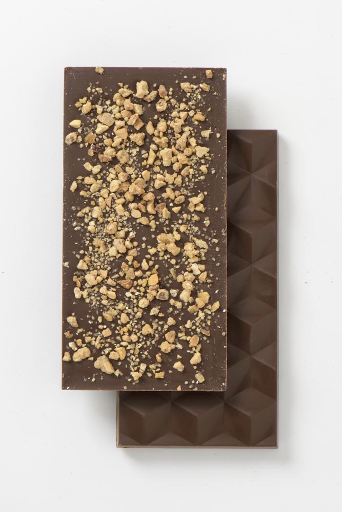 טבלה שוקולד מריר 55% שבבי פיסטוק ולוז