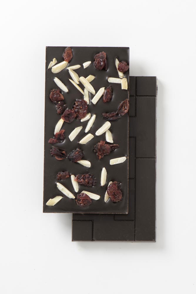 טבלה שוקולד מריר 55% עם שקדים וחמוציות
