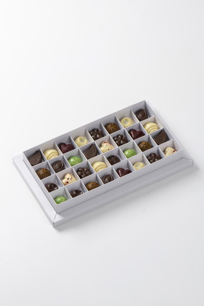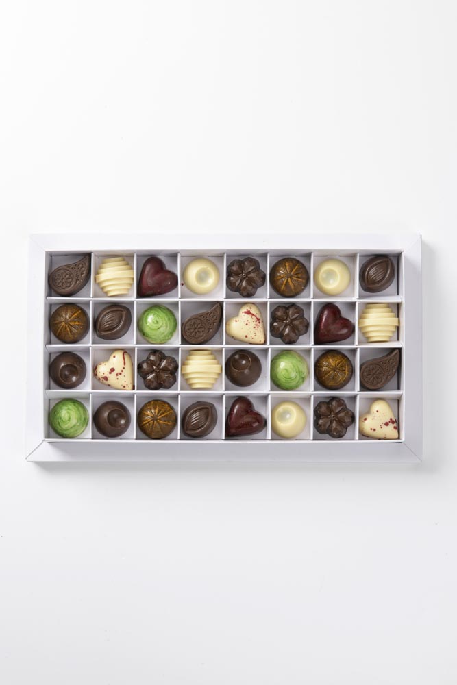 מארז 40 פרלינים עם מילויים שונים בצבעים וצורות שונות