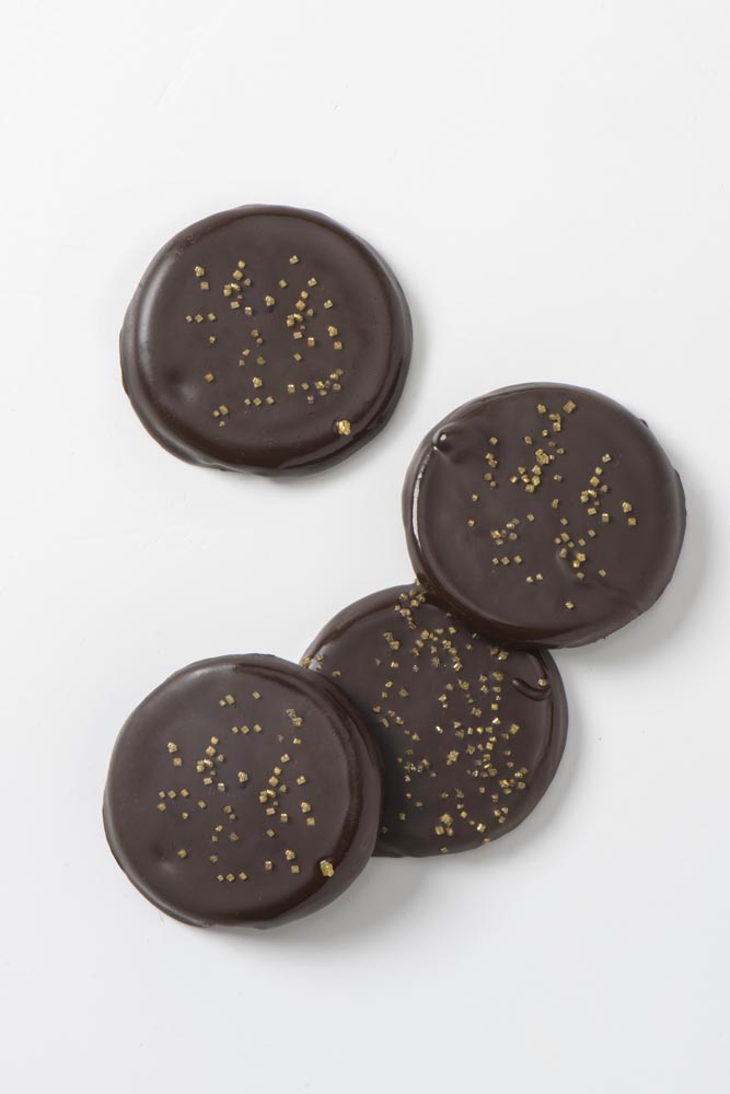 כמות של עוגיות לוטוס בציפוי שוקולד